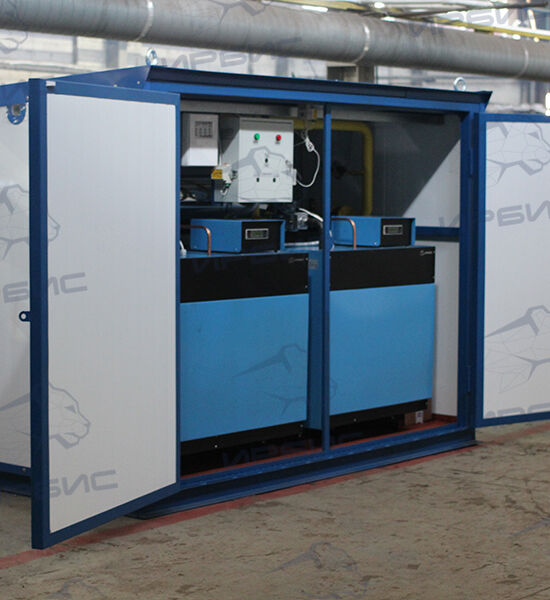 Такие котлы будут размещены в металлическом боксе с утепленными стенами. Размер короба может также быть подобран индивидуально. Бокс обеспечивает защиту оборудования от негативного воздействия окружающей среды и атмосферных осадков и позволяет эксплуатировать котлы при температуре от -45 до +40 градусов.