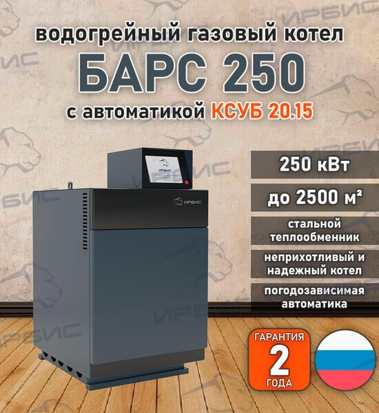 Отопительные газовые котлы «Барс 250» с КСУБ 20.15 используются, как правило, для помещений до 2500 м².